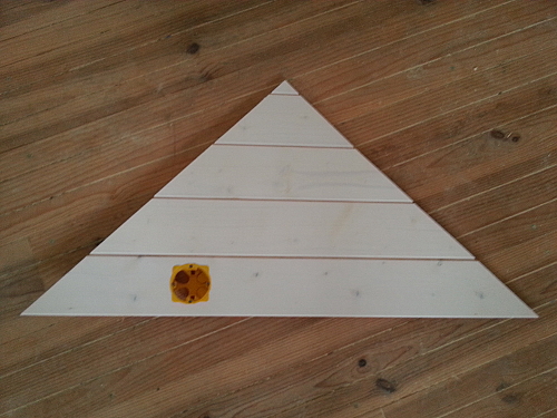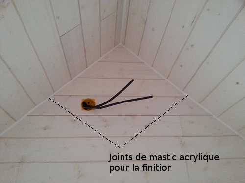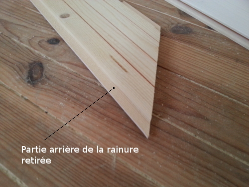 Pour cela, il faut retirer l’arrière de la première lame qui composera ce dernier triangle de lambris (photo précédente), comme expliqué dans Comment poser vos dernières lames de lambris.
