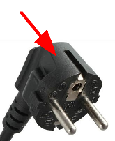 Le fusible tant recherché se trouve… à l’extrémité du câble d’alimentation, à l’intérieur (flèche rouge) de la fiche secteur mâle (ci-dessous) :