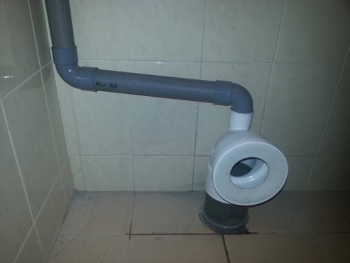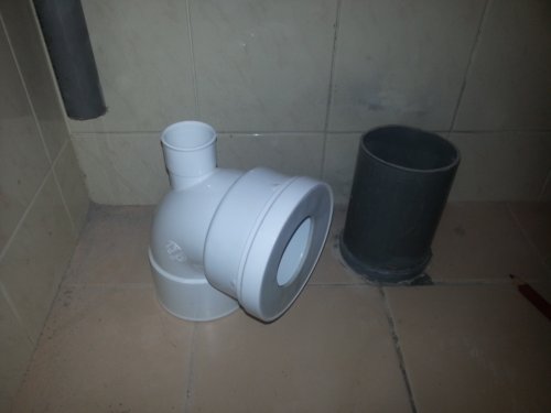 Sur la photo ci-dessous, l’évacuation en PVC de 40mm arrive de l’étage (à gauche).
