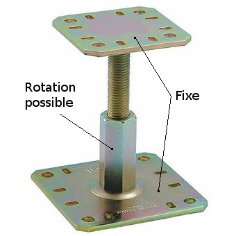 Si vous avez lu la série d’article sur la construction d’une terrasse sur pilotis, vous avez vu que la fixation et le réglage des poteaux se faisait par des pieds réglables (ou platines réglables).