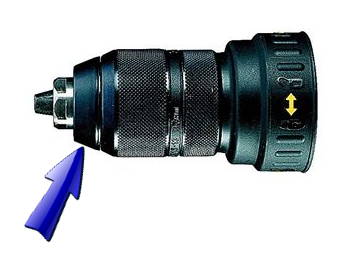 La bague que l’on rétracte vers le corps de la visseuse pour insérer un porte-embouts est indépendante elle aussi de la rotation de la visseuse :