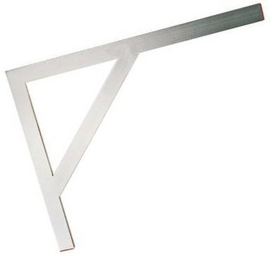 Pas une petite équerre d’écolier, une énorme, une équerre de maçon, de 80 x 60cm :