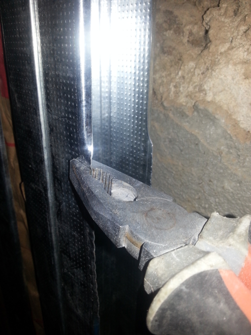 Pour cela, il faut redresser les bords recourbés des montants, à l’aide d’une pince plate, comme ceci :