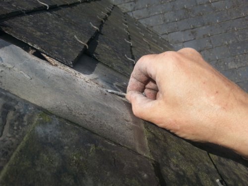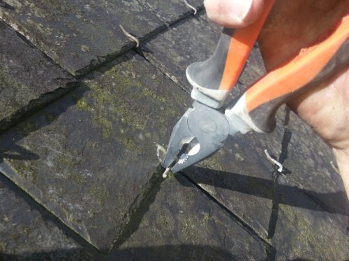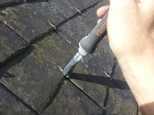 Les couvreurs disposent de lames assez longues qui permettent de guider les ardoises pour le retrait et l’introduction sous les autres ardoises.