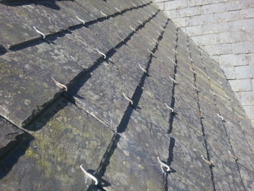 On procède alors en sens inverse : on replace les ardoises en partant du bas vers le haut, et sans oublier de remettre les crochets 😉 .