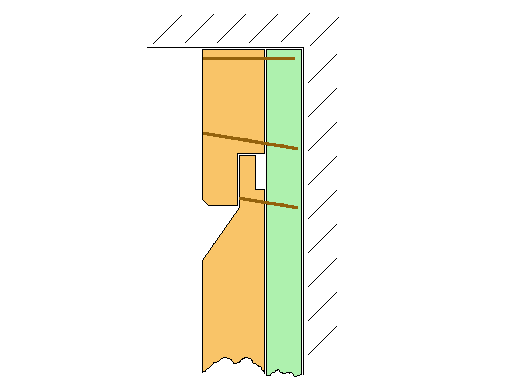 Les traits marrons sur le dessin représentent les pointes sans tête pour fixer le lambris. Je vous conseille d’utiliser un pistolet pneumatique pour la mise en œuvre de ces pointes. Voyez pour cela l’article Fixer facilement et rapidement lambris ou bardage.