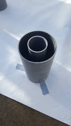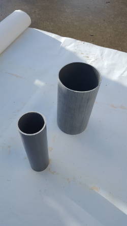 Et bien j’ai utilisé pour cela du tube de PVC de 100 mm et un autre de 50 mm.
