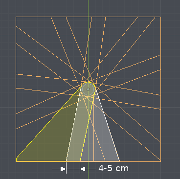 Puis la deuxième (contour blanc), chacune dessinée suivant un angle de 30° et un recouvrement de la suivante sur la précédente d’environ 4 à 5 cm à l’extrémité :