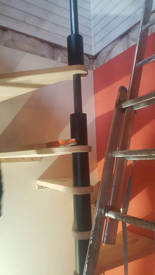 Pour placer les dernières marches et le palier, il sera peut-être nécessaire de pousser le tube central.