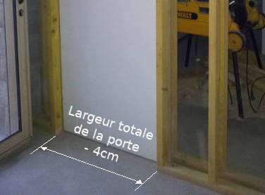 Par exemple si la porte retenue fait 83 cm de large, vous laisserez un passage entre les 2 montants de 79 cm :