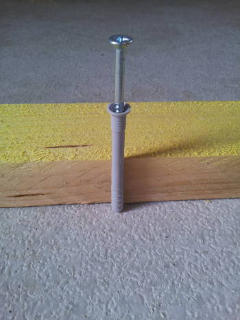 Seule précaution, en utilisant cette méthode, je vous conseille une fois le perçage effectué de mettre en place d’abord la cheville en plastique seule, et seulement après la vis à frapper :