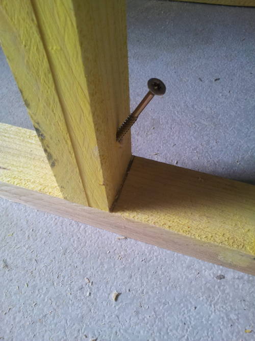 La fixation des montants sera assurée par des vis biaises, c’est-à-dire vissées à l’oblique :
