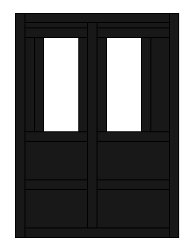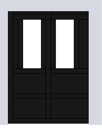 Il suffira de peindre cette porte d’une couleur rappelant une teinte métallique (sombre), et de poser dans 2 réservations prévues à la construction 2 carreaux en verre.