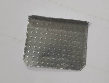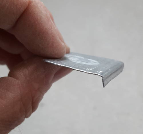 Donc, à l’aide d’une cisaille, j’ai taillé dans une chute de montant métallique pour placo une petite pièce en forme de crochet :