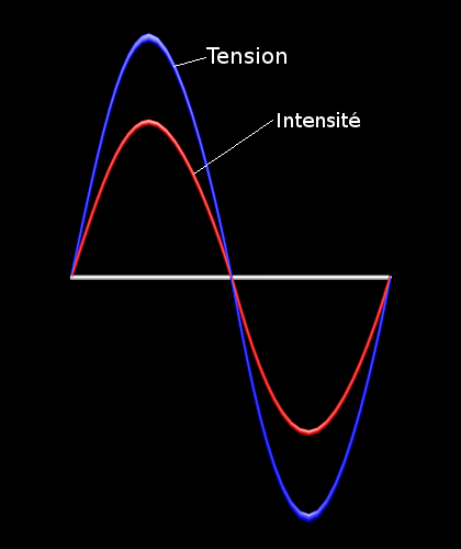 Dans une simple résistance, qui est un élément passif, la tension et l’intensité restent en phase :
