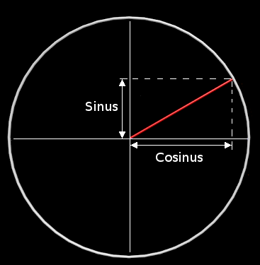 Pour ceux qui ne sont pas fan de trigonométrie, voici un rappel de ce que sont sinus et cosinus sur un cercle de rayon 1 :