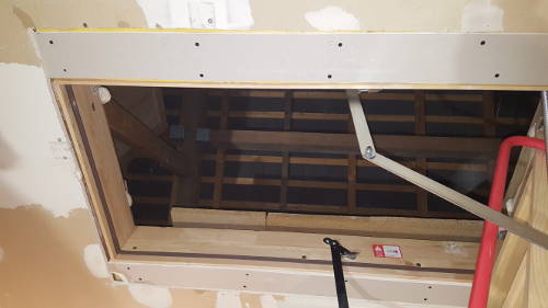 Pour placer correctement notre escalier, il faudra prendre en considération que lorsque ce dernier est fermé, le panneau de fermeture devra se trouver dans le même alignement que le plafond tout autour.