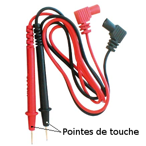 Les contrôleurs disposent de 2 fils équipés de pointes de touche, de couleur noir et de couleur rouge, à raccorder dans 2 bornes de couleurs respectivement identiques :