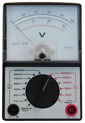 Sur les anciens contrôleurs analogiques (à aiguille), il est important de sélectionner manuellement le bon calibre (on sélectionne une tension supérieure à la tension attendu) :