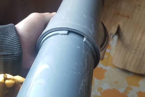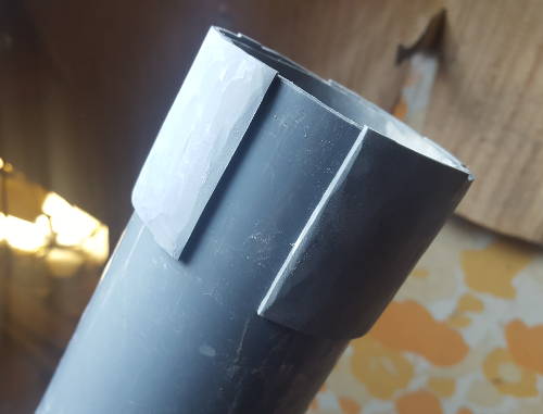 L’idée est d’utiliser cette « bague » pour agrandir l’ancien tube, en positionnant le manque de matière vers le haut, manque qui sera comblé par de la colle PVC.
