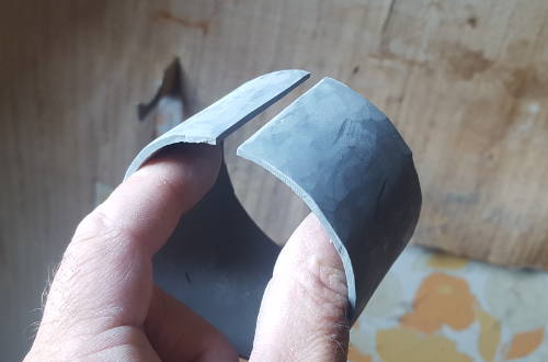 Comme j’ai dû couper une partie de ce tube improbable de 75mm, j’en ai coupé un morceau d’environ 5 cm de longueur, soit un mini-tube, et j’ai ouvert ce tube par un trait de scie :