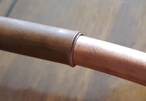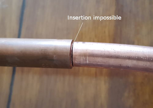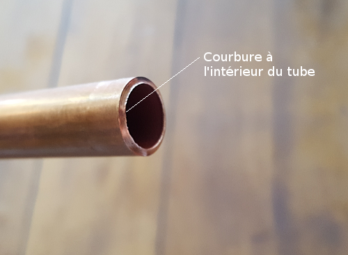 L’inconvénient du coupe-tube est qu’il recourbe légèrement le cuivre vers l’intérieur du tube :