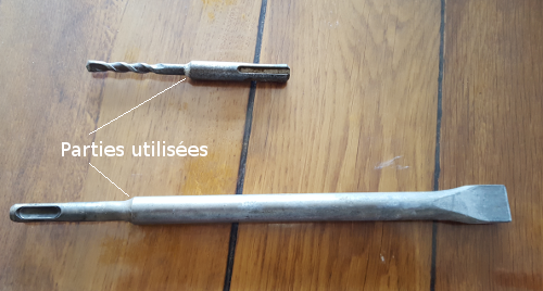 Un burin ou un foret SDS à utiliser en fonction du diamètre des tubes :