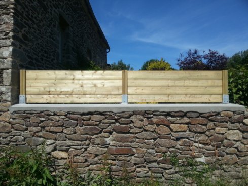 Pour le montage, c’est le même principe que pour une palissade : poteaux rainurés fixés sur pieds de poteaux à côtés « ouverts » (pieds pour palissades).