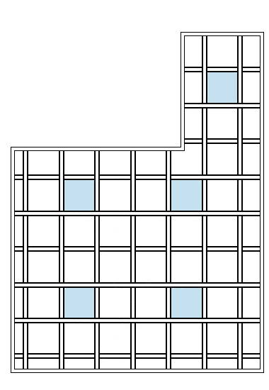Si la pièce avait été un rectangle, le calepinage aurait donné cette disposition idéale (avec la cornière représentée autour) :