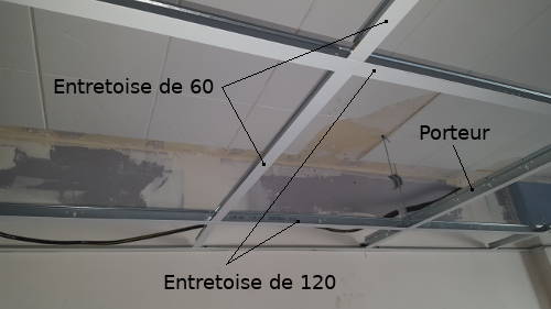 Note : J’ai oublié de préciser que pour couper à la bonne longueur les porteurs et les entretoises, une simple cisaille à placo suffit.