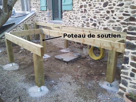 Sachez que vous pouvez faire de même, l’important est la hauteur des bastaings car la terrasse sera fixée dessus.