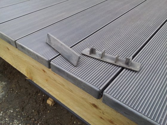 Il suffit de positionner les clips au niveau de chaque bastaing de la terrasse.