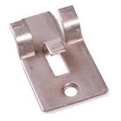 La fixation s’effectue en insérant dans cette rainure des clips en acier inoxydable comme ci-dessus, et en introduisant une vis (fournies avec les clips) dans le trou prévu sur chaque clip.