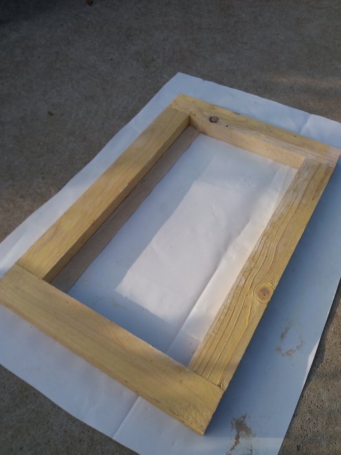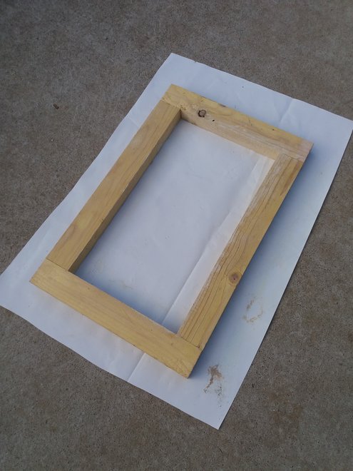 Mon moule est composé de 4 morceaux de chevron à plat (épaisseur 43mm), de façon à avoir des dimensions intérieures de 50cm de longueur x 28 cm de large.