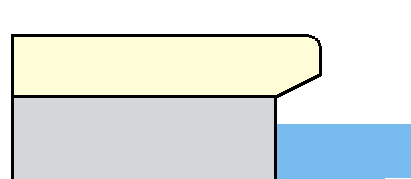 Comme indiqué plus haut, je souhaite un profil biseauté en bord intérieur, et qui dépassera sur l’eau, comme sur le schéma suivant :