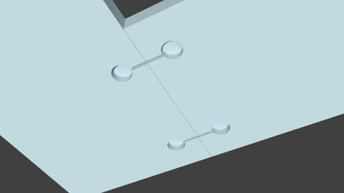 Une perceuse équipée d’une fraise de 35mm (la même fraise que celle utilisée pour placer des charnières invisibles pour les portes — nous reviendrons sur ce point), et deux traits de scie circulaire entre les deux trous, en ayant bien sûr réglé la profondeur pour ne pas traverser les plans 😉 !