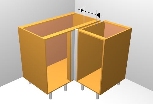 Avant de réaliser les formes pour les demi-lunes, on s’assurera sur les meubles d’angle que l’espace entre les 2 trous est suffisant pour que rien ne gêne le placement et le vissage de ces demi-lunes :