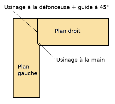 Et c’est lui, autrement dit le plan du milieu, qui devra avoir un usinage (effectué à la défonceuse) à droite ET à gauche :