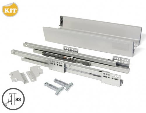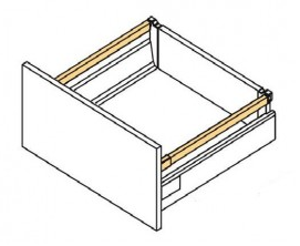 Les côtés des tiroirs étant tous de la même hauteurs (83mm), pour optimiser les rangements encombrants comme les casseroles, il existe le même kit tiroir avec des tubes latéraux de sections rectangulaires (en jaune sur le dessin ci-dessous) moyennant un douzaine d’euros supplémentaires :