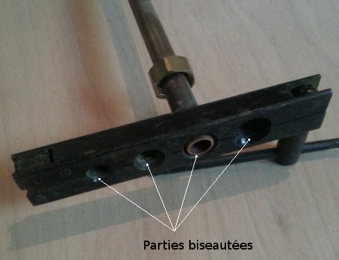 Si vous regardez cet étau, vous constaterez que les extrémités des trous sont biseautées d’un côté, et pas de l’autre.