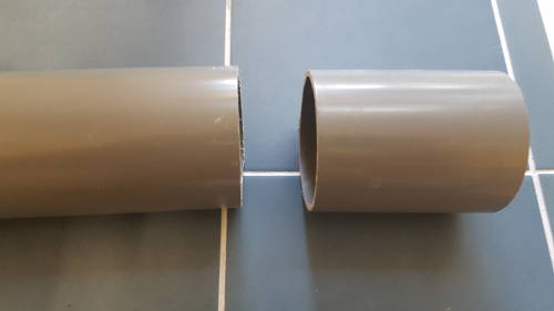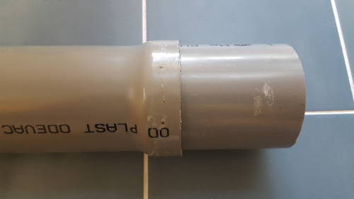 Le PVC, une fois chauffé par une flamme (attention cependant à bouger sans cesse la flamme pour ne pas risquer de brûler le PVC), devient extrêmement malléable, ce qui permet d’insérer très facilement l’autre morceau du même diamètre.