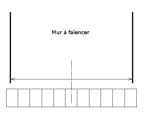 Donc, la première chose à faire pour ce calepinage, c’est de mesurer la longueur du bas du mur à faïencer, et diviser cette longueur par deux.