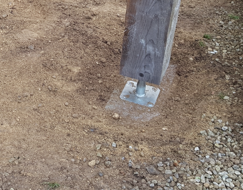 Pour le soutien des poteaux, le choix d’utiliser des parpaings pleins à la place de plots en béton a été retenu en fonction de la faible exposition au vent de l’ensemble.