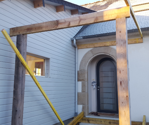 Si vous ne faites pas partie des veinards qui ont déjà un carport accolé à leur maison leur permettant de décharger leurs courses en restant bien au sec, voici une réalisation plus petite qu’un carport, mais qui en plus d’embellir votre entrée (d’où le titre 😉 ), vous permettra de réduire sérieusement votre exposition à la pluie, et donc de rester protégé !