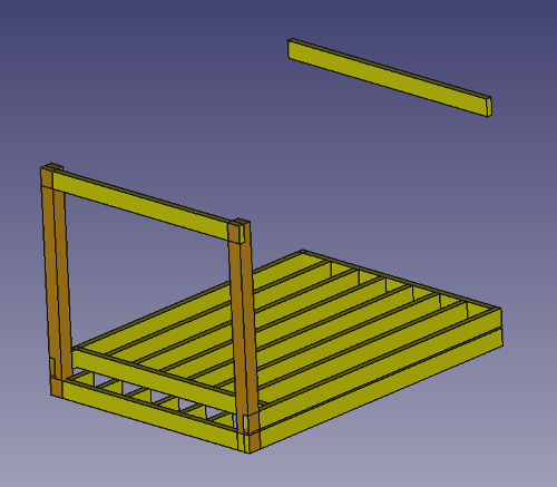 de bastaings (tous en 6,5 cm x 18 cm) seront nécessaires pour créer la structure, j’ai dessiné un rapide « croquis » avec FreeCad, « comme d’habituuuuuudeuuuuuu…. » 🙂 !