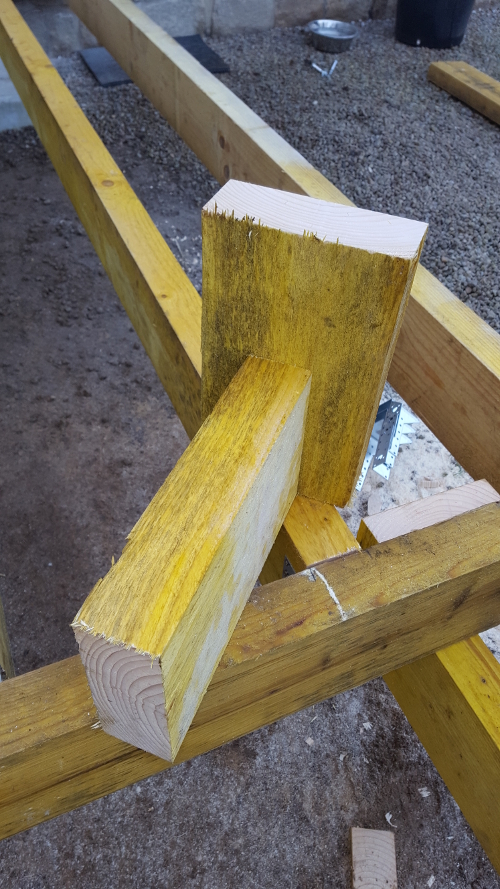 Le temps de réaliser la terrasse, l’ensemble est contreventé avec 2 chevrons :