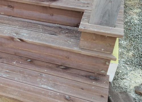 Le plus délicat, ce sera la pose des contremarches, l’entourage des poteaux et le côté visible de la terrasse.
