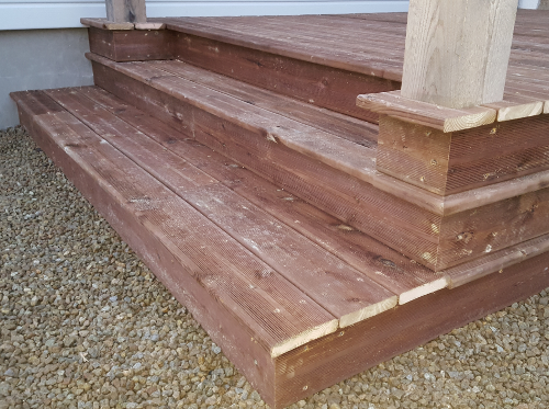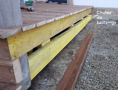 Pour dissimuler le dessous de la terrasse, visible par le côté, il faut pouvoir poser des lames à l’instar des contremarches.