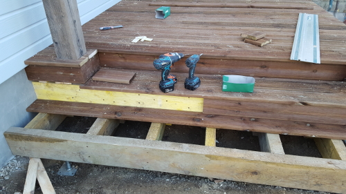 Comme je voulais le dire, il n’y a pas de difficulté particulière pour poser des lames sur le dessus de la terrasse.